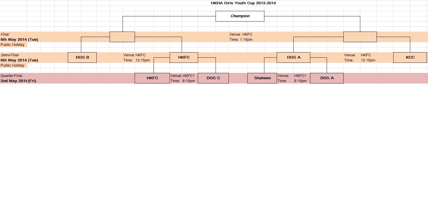 We have pleasure in confirming that the Youth Cup 2013-2014 Semi-finals and Finals will be held on 6th May, 2014 from 12:00pm - 6:00pm at Hong Kong Football Club. We welcome everyone to come and support the Youth Hockey development.
